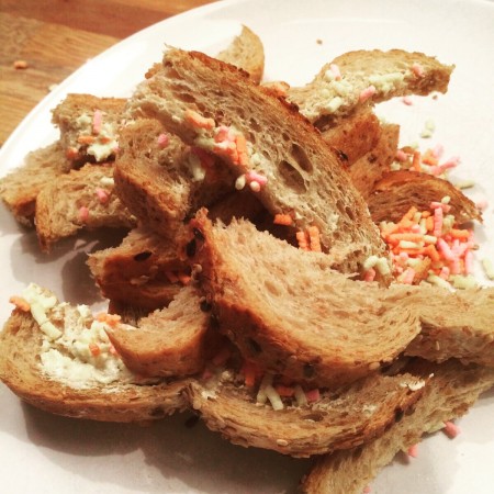 Ik sta natuurlijk ook iedere dag uren in de keuken om met liefde en aandacht gezonde en smaakvolle home-cooking gerechten voor ze klaar te maken, ze zouden niet anders meer willen. En dus, natuurlijk eten ze hun korstjes op, die van jou niet dan? Voor de drie P’s bedanken ze beleefd. Oh, en weet iemand nog een goedkoop adresje voor goijibessen? Die kan ik hier niet aanslepen!