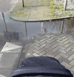 Omdat ik deze blog toch positief wil afsluiten – ik ben niet zo’n zeikerd als ik misschien lijk – wil ik nog even zeggen dat ik het wandelen met mijn zoontje in de kinderwagen een van de fijnste dingen vind die er zijn. Helemaal als het zonnetje schijnt en mijn vriend mee is, vind ik dat een heerlijk geluksmomentje en doen die plassen water en opengebroken stoepen me helemaal niks.